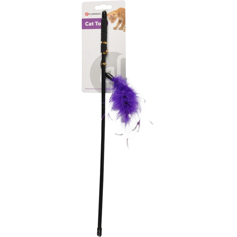 Réveillez l’instinct de chasseur de votre chat avec ce jouet canne à pêche et ses plumes de couleurs vives.